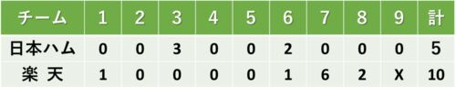 【楽天】 則本 渡辺佑【日本ハム】 ポンセ[本塁打] 木村1号(日) ちょっと頑張ったけど、やっぱ弱い 集中打がでない、ちぐはぐ打線健在。 9番に打たれたノリも悪くはあるが、それでも3点だから打線が悪い。 コメントのしようもない、しょうもない試合でし…